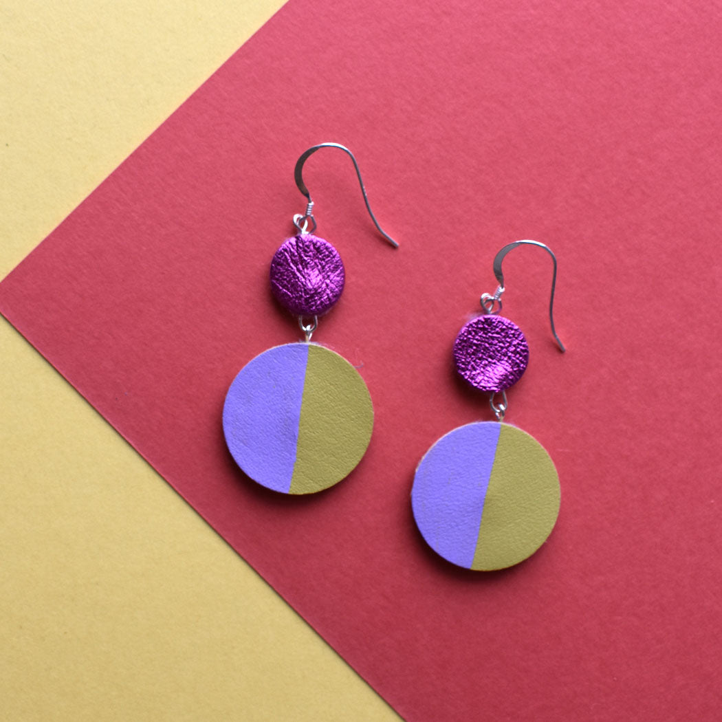 The front of the earring is made from beautifully soft Italian leather offcuts, which have been hand painted. The reverse is made from wool felt with sterling silver findings.