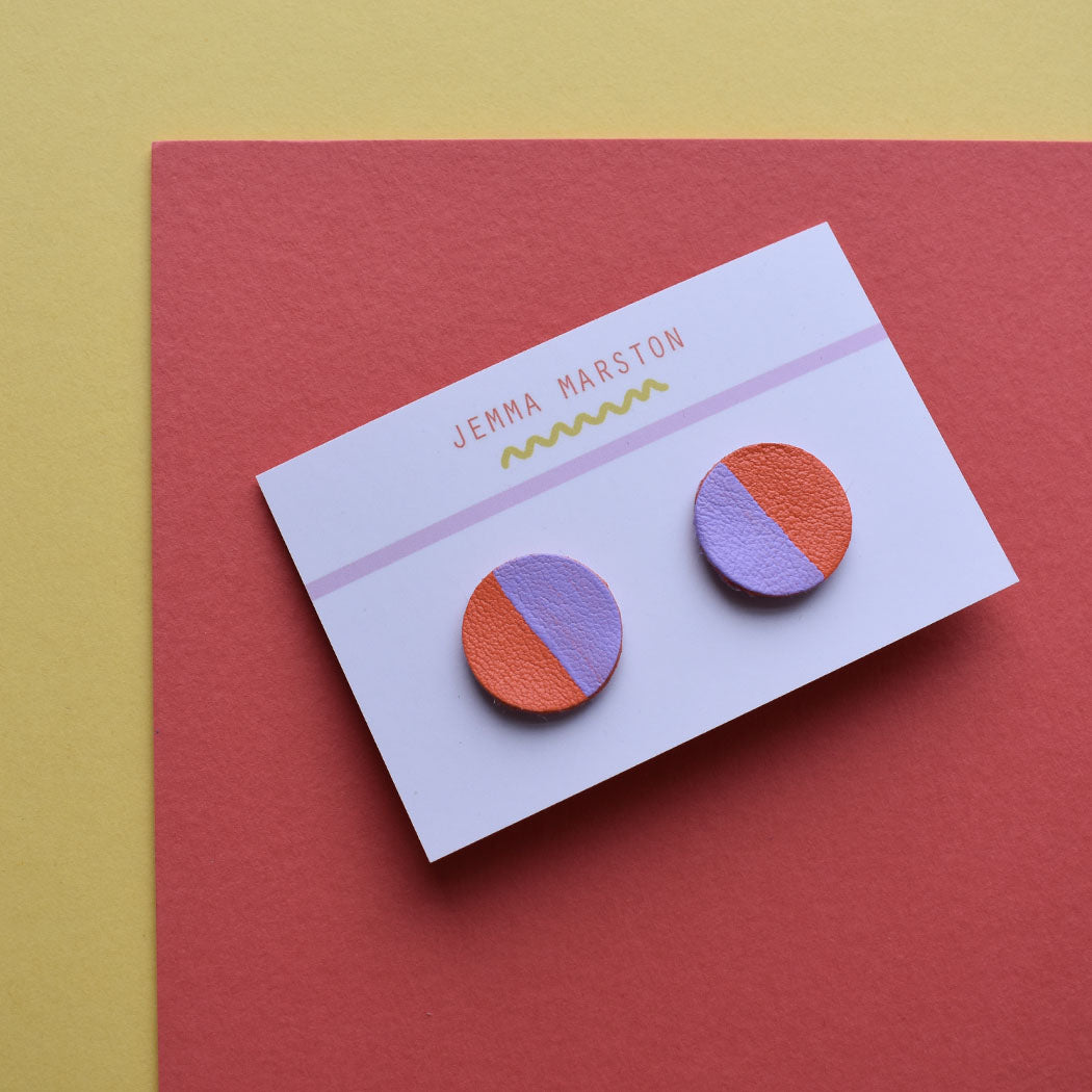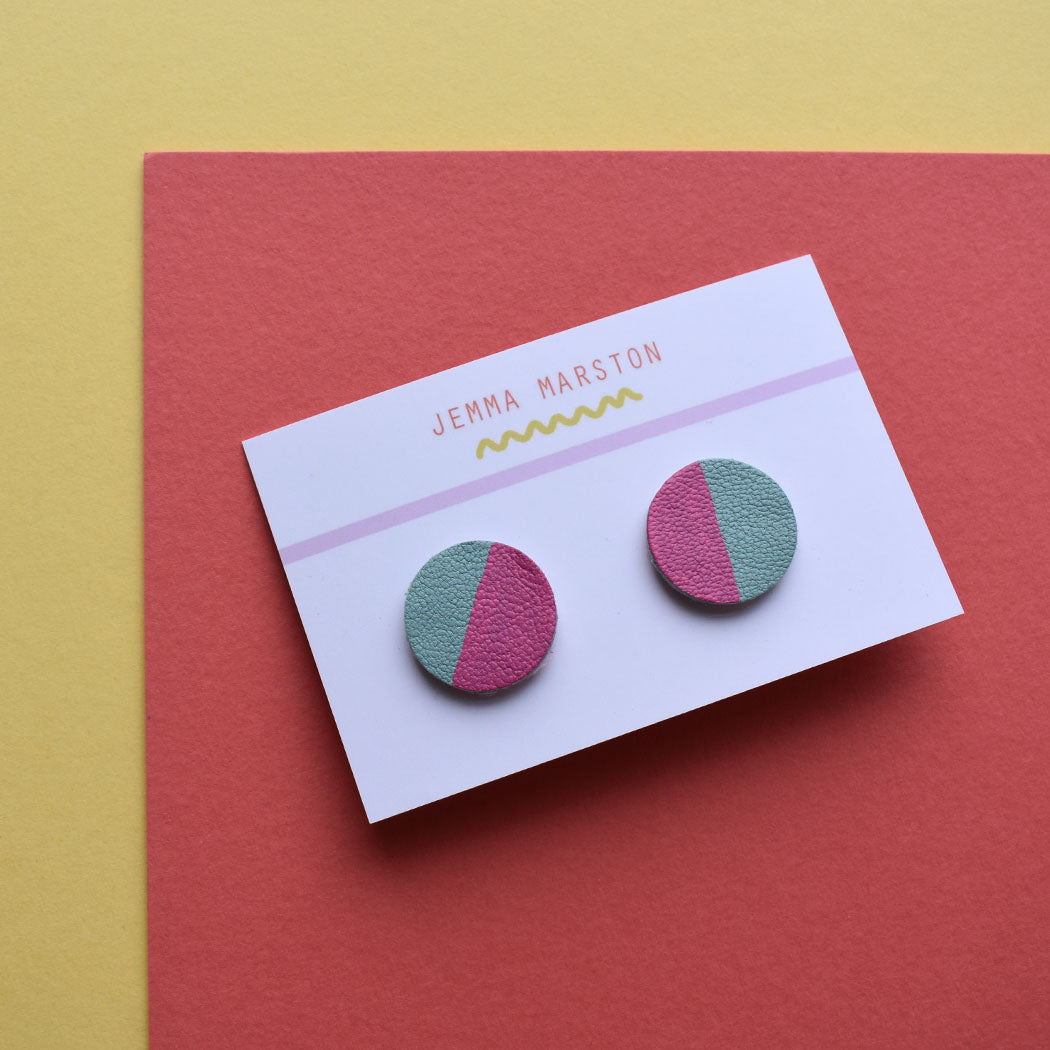 The ‘Half & Half Midi Leather Painted Stud Earrings‘ are the perfect every day accessory to give your outfit a pop of colour or sparkle. Made using the offcuts from larger leather products & then hand painted, they will all be slightly different making them unique for you.