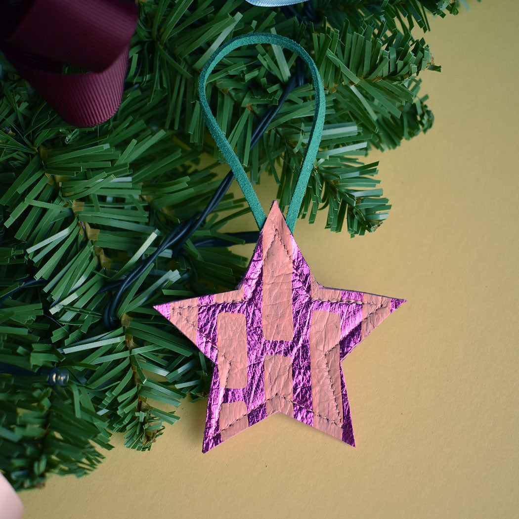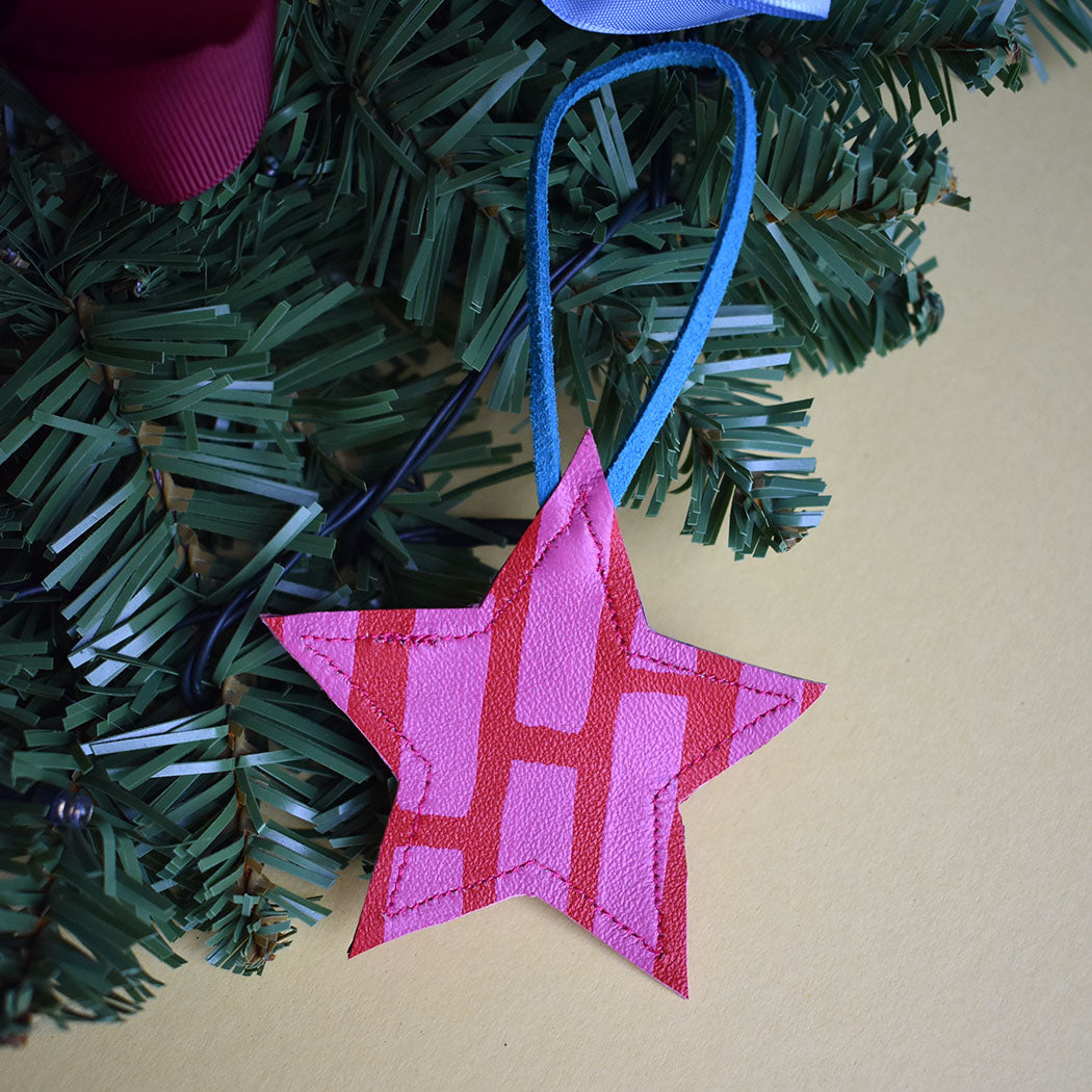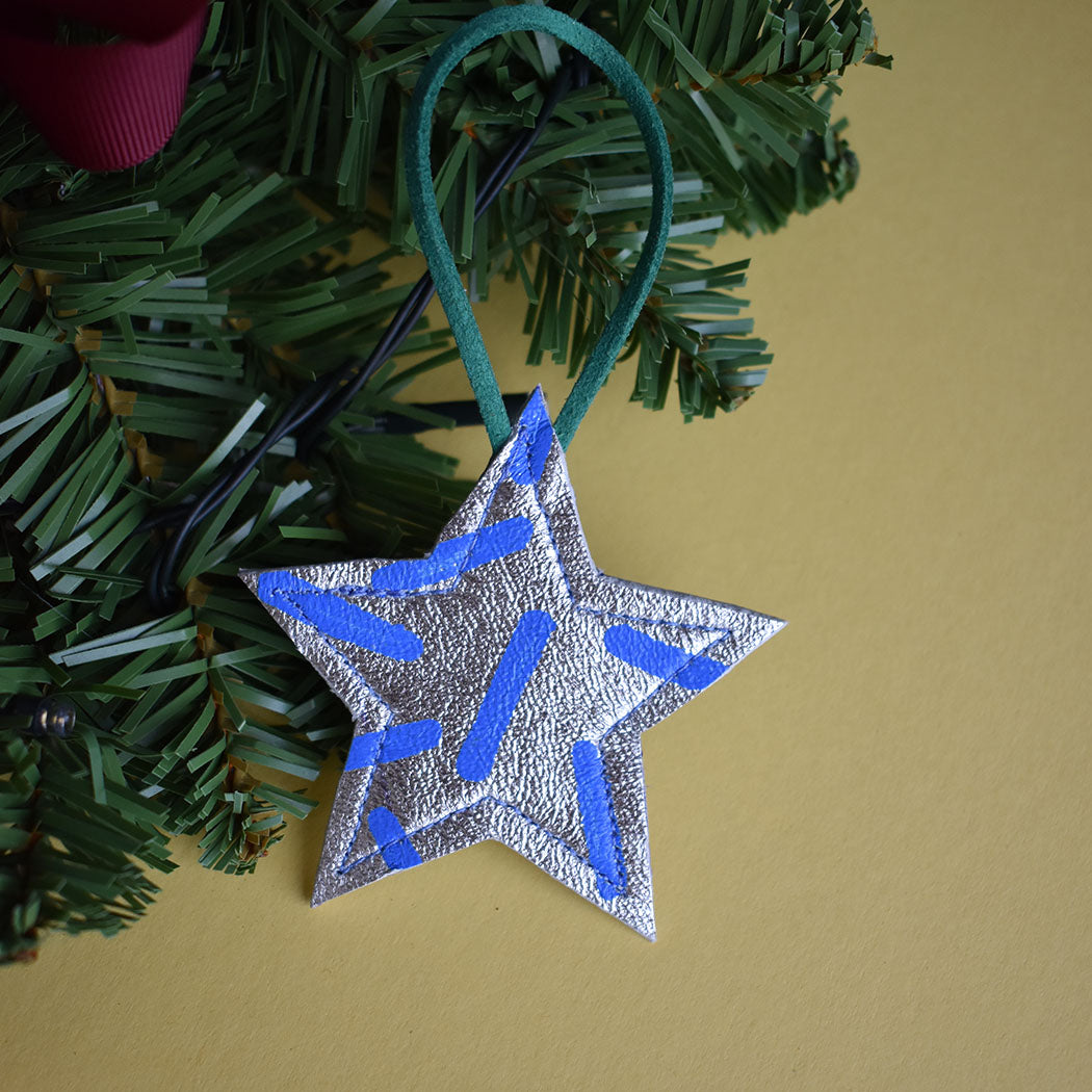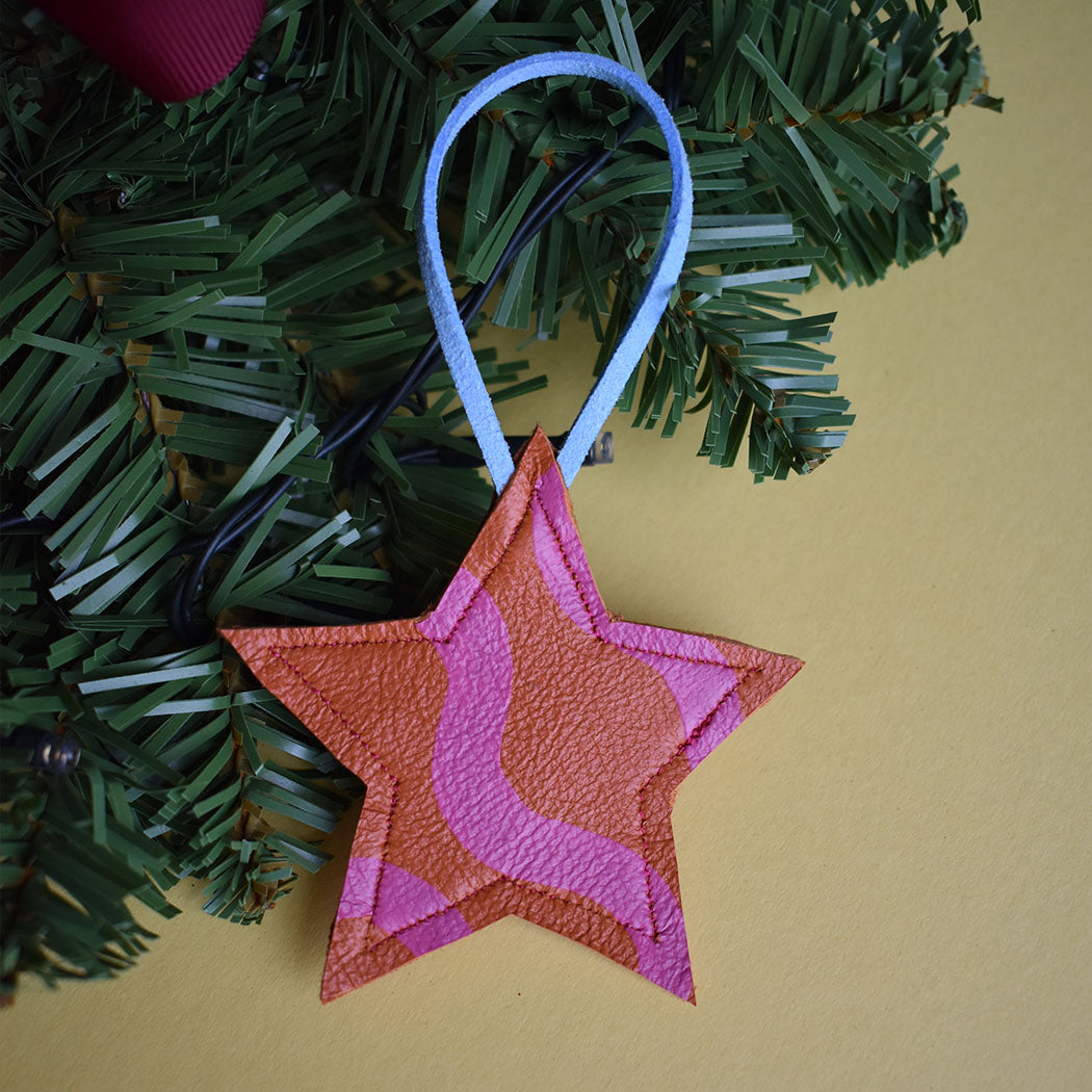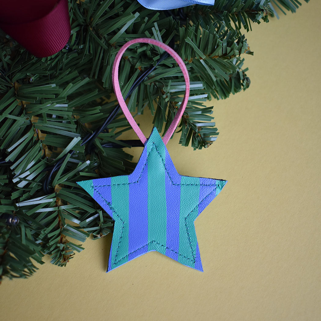 Beautiful Hand Painted Leather Mini Star Christmas Decorations. These are made in a variety of styles and colour ways that will no doubt bring a smile and a bit of colour to your home this Christmas.