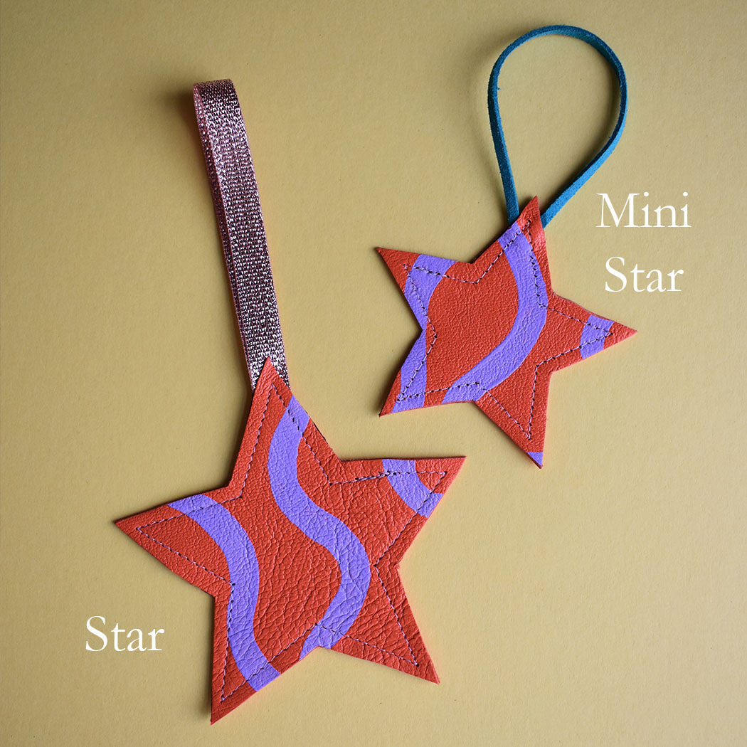 Beautiful Hand Painted Leather Star Christmas Decorations. These are made in a variety of styles and colour ways that will no doubt bring a smile and a bit of colour to your home this Christmas.